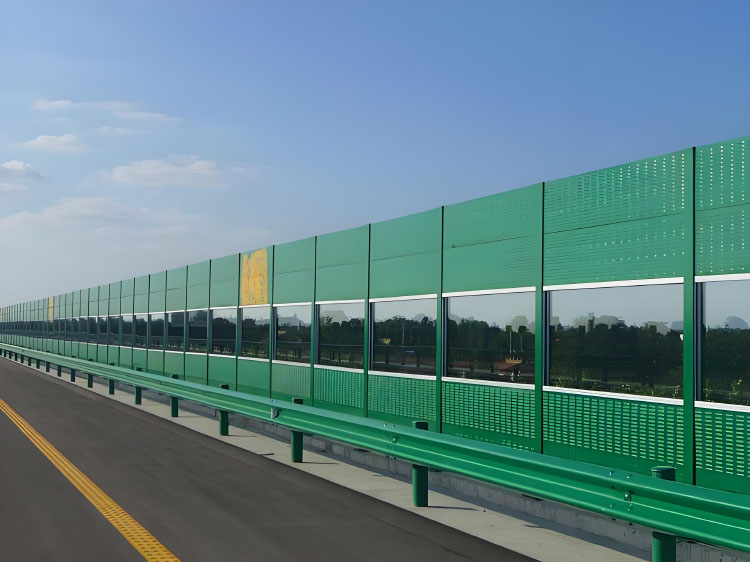 高速公路聲屏障(隔音墻)主要由鋼結構立柱和吸隔聲屏板兩部分組成,立柱是聲屏障的主要受力構件,它通過螺栓或焊接固定在道路防撞墻或軌道邊的預埋鋼板上;吸隔聲板是主要的隔聲吸聲構件,它通過高強彈簧卡子將其固定在H型立柱槽內,形成公路聲屏障(隔音墻)。